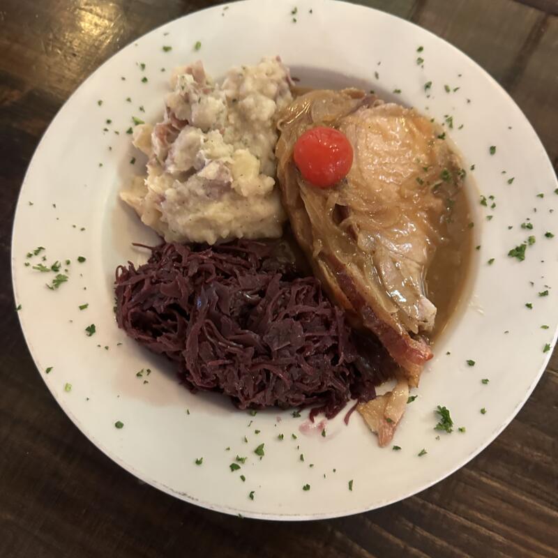All of the Bratwurst, Slice of Schnitzel, Sauerkraut, Two Small Pretzels, Side of Käsespätzle, Pickles, and Mustard | *No substitutions. **Not Available To-Go.